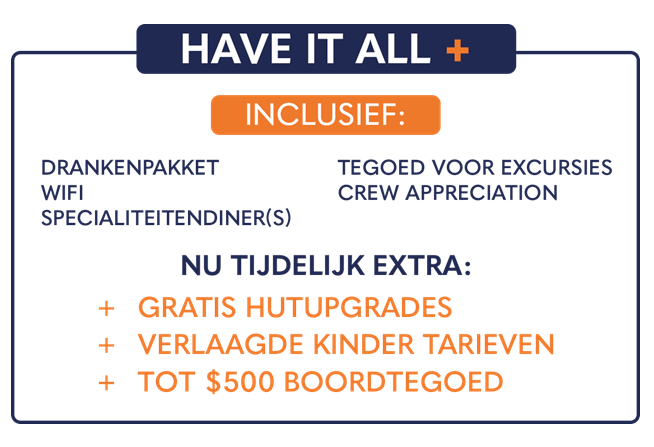 ONZE NIEUWE PROMOTIE: VANAF 18 DECEMBER HAVE IT ALL + UPGRADES & TOT WEL $500 BOORDTEGOED