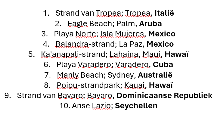 1) Tropea, Italië 2) Eagle Beach; Palm, Aruba 2) Playa Norte; Isla Mujeres, Mexico